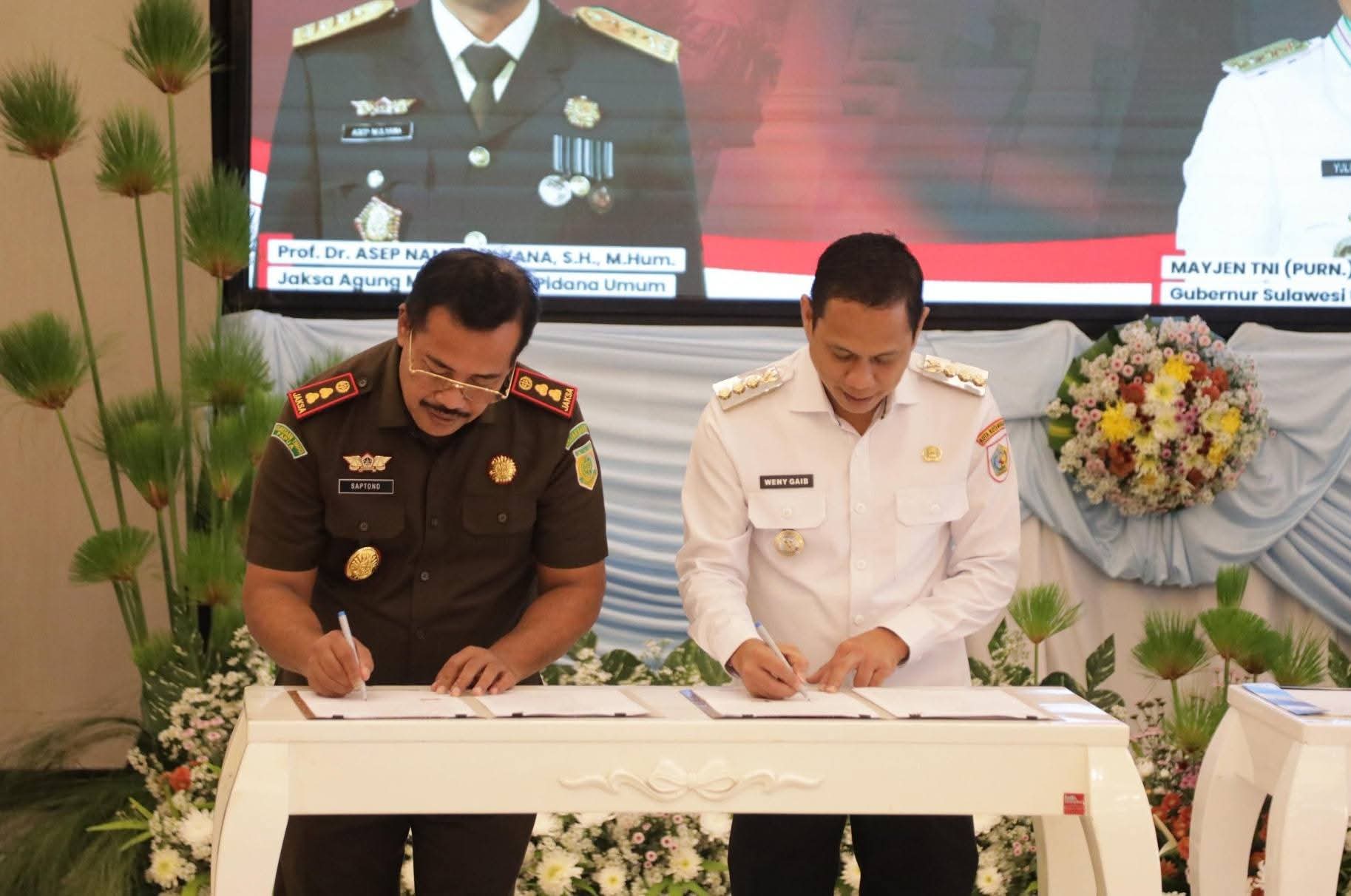 Hadir pada acara penandatanganan kerjasama Gubernur Sulawesi Utara, Yulius Selvanus, Jaksa Agung Muda Tindak Pidana Umum (Jampidum) yang diwakili Direktur A Jampidum Kejaksaan Agung Republik Indonesia, Hari Wibowo Ketua DPRD Provinsi Sulawesi Utara, Fransiscus Silangen Kepala Kejaksaan Tinggi Sulawesi Utara, Jacob Hendrik Pattipeilohy, Perwakilan Forkopimda Sulawesi Utara, para Bupati, Wali Kota dan Kepala Kejaksaan Negeri se – Provinsi Sulawesi Utara. (“/Ridwan)