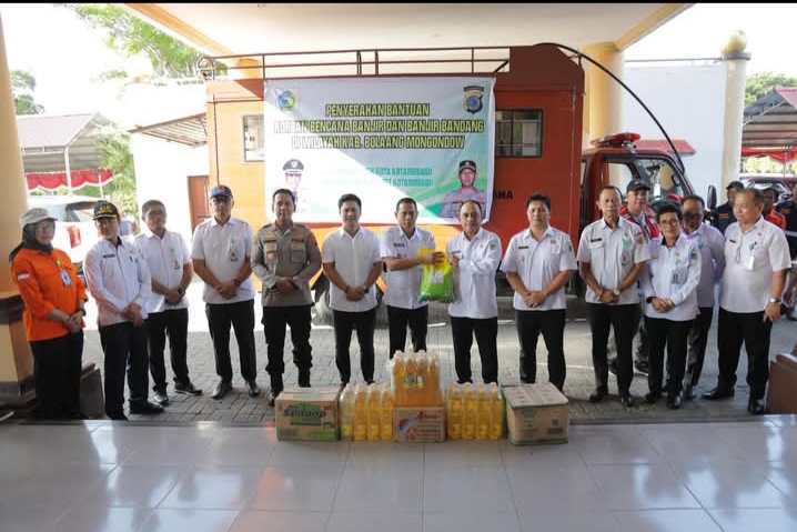Adapun dikesempatan ini, Bupati Bolmong menyampaikan rasa terima kasihnya atas kepedulian Pemerintah Kotamobagu serta Polres Kotamobagu.