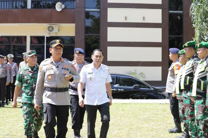 Apel siaga yang berlangsung di halaman Mako Polres Kotamobagu dipimpin Kapolres Kotamobagu AKBP Irwanto, SIK,. MH.